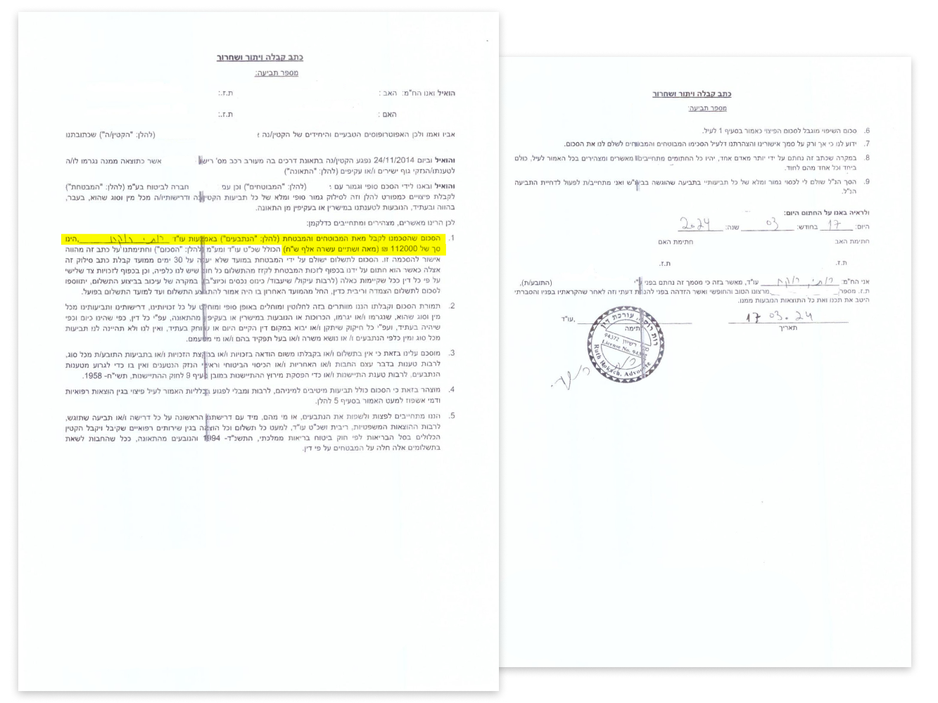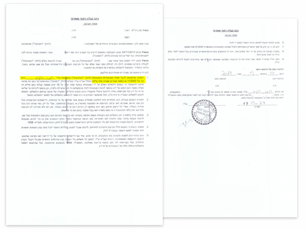 הורי ילד שנפגע בתאונת דרכים כהולך רגל פנו למשרדנו. במסגרת הטיפול בתיק, משרדנו הציג לחברת הביטוח את ההשלכות העתידיות של הפגיעה, לרבות השפעת הצלקת על דימויו העצמי ועל יכולתו לעבוד בעבודות ייצוגיות בעתיד. בעקבות ליווי משפטי מקצועי ונחוש, השגנו עבור הילד פיצוי כספי משמעותי של 112,000 ₪.
